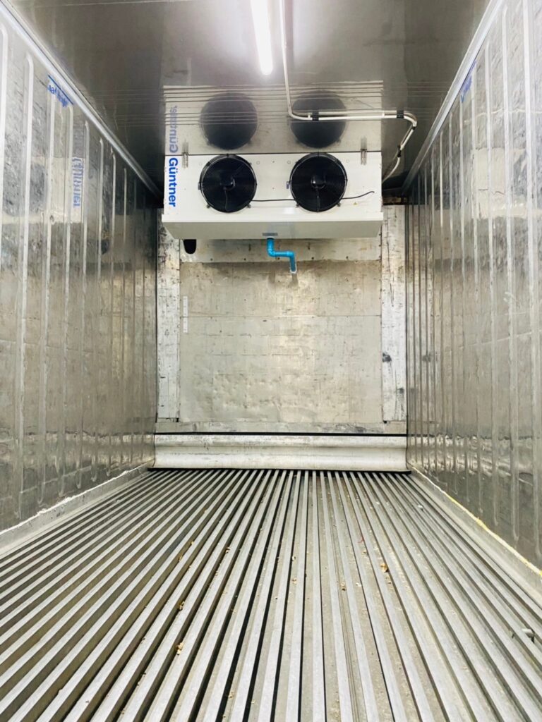 – ผนังตู้คอนเทรนเนอร์เป็นแผ่นฉนวน PU (Polyurethane Foam) หนา 4 นิ้วใช้กับอุณหภูมิที่ -20℃ (ผนังห้องสามารถเปลี่ยนไปตามสเปคอุณหภูมิได้และก็จะมีค่าใช้จ่ายที่แตกต่างออกไปตามอุณหภูมิห้องเช่น -40 C ก็จะหนาขึ้นและแพงขึ้นหรือ -10 C ก็อาจจะเป็นโฟม PS (Polystyrene Foam) ราคาก็จะถูกลง)