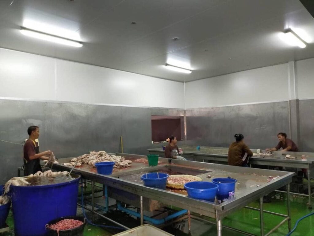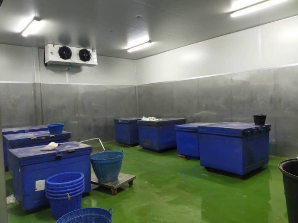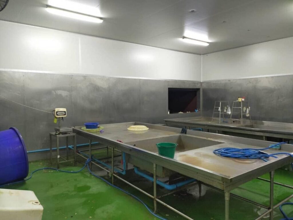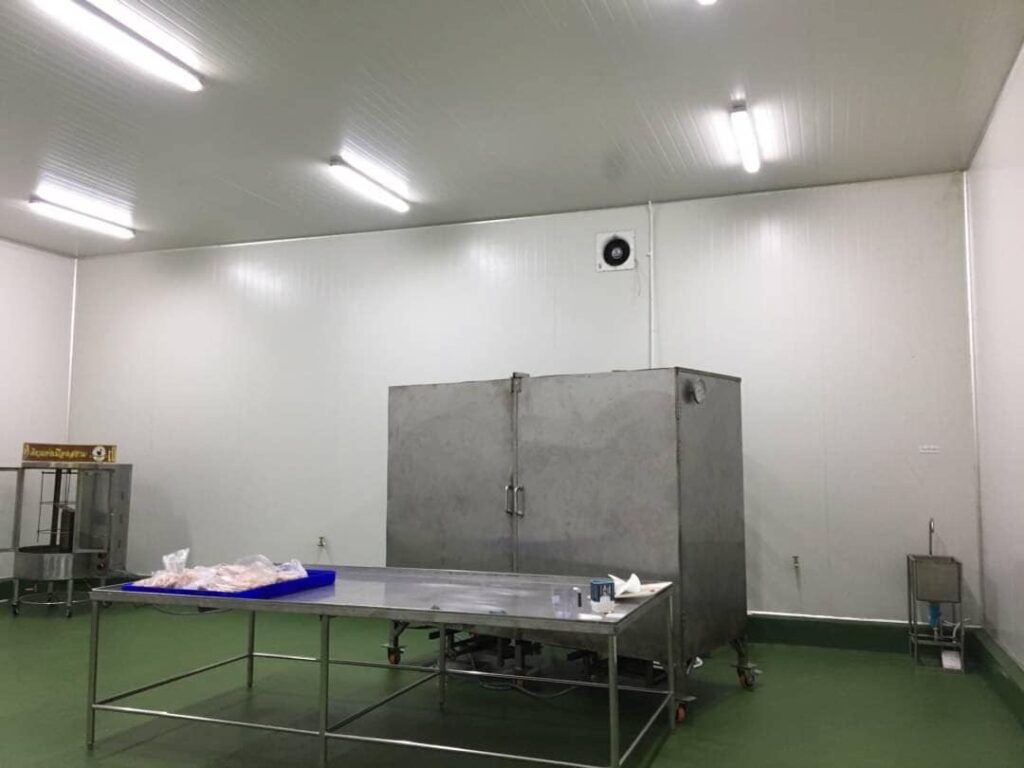 7. ห้องเก็บสินค้าสำเร็จรูป (Finish goods) ห้องนี้จะให้เก็บสินค้าที่ผลิตเสร็จแล้วเพื่อรอการจัดส่งจะเป็นห้องเย็นขนาดต่างๆตามปริมาณการผลิต